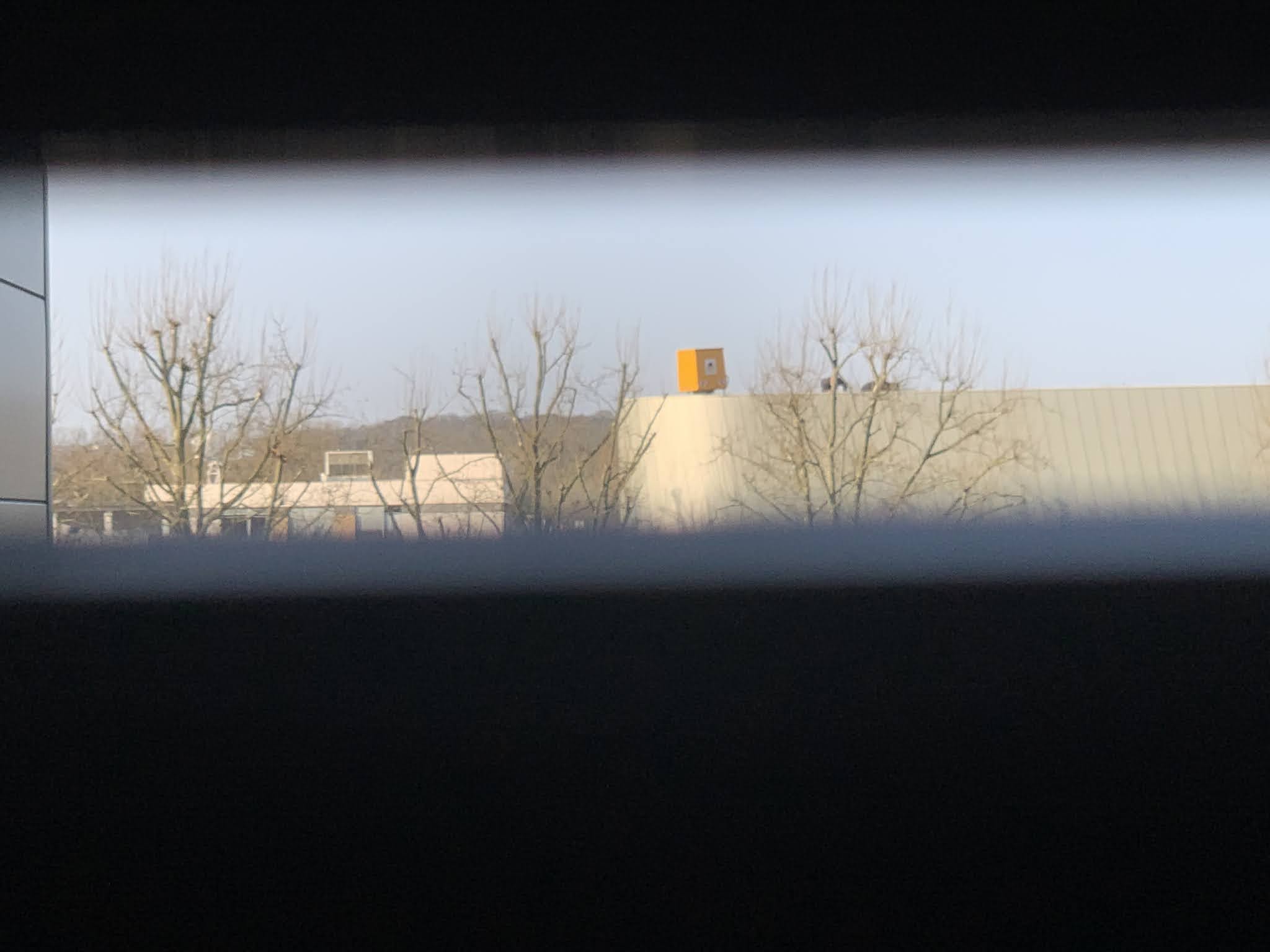 早上看到宿舍前停車場斜對面的Z棟屋頂有人影。