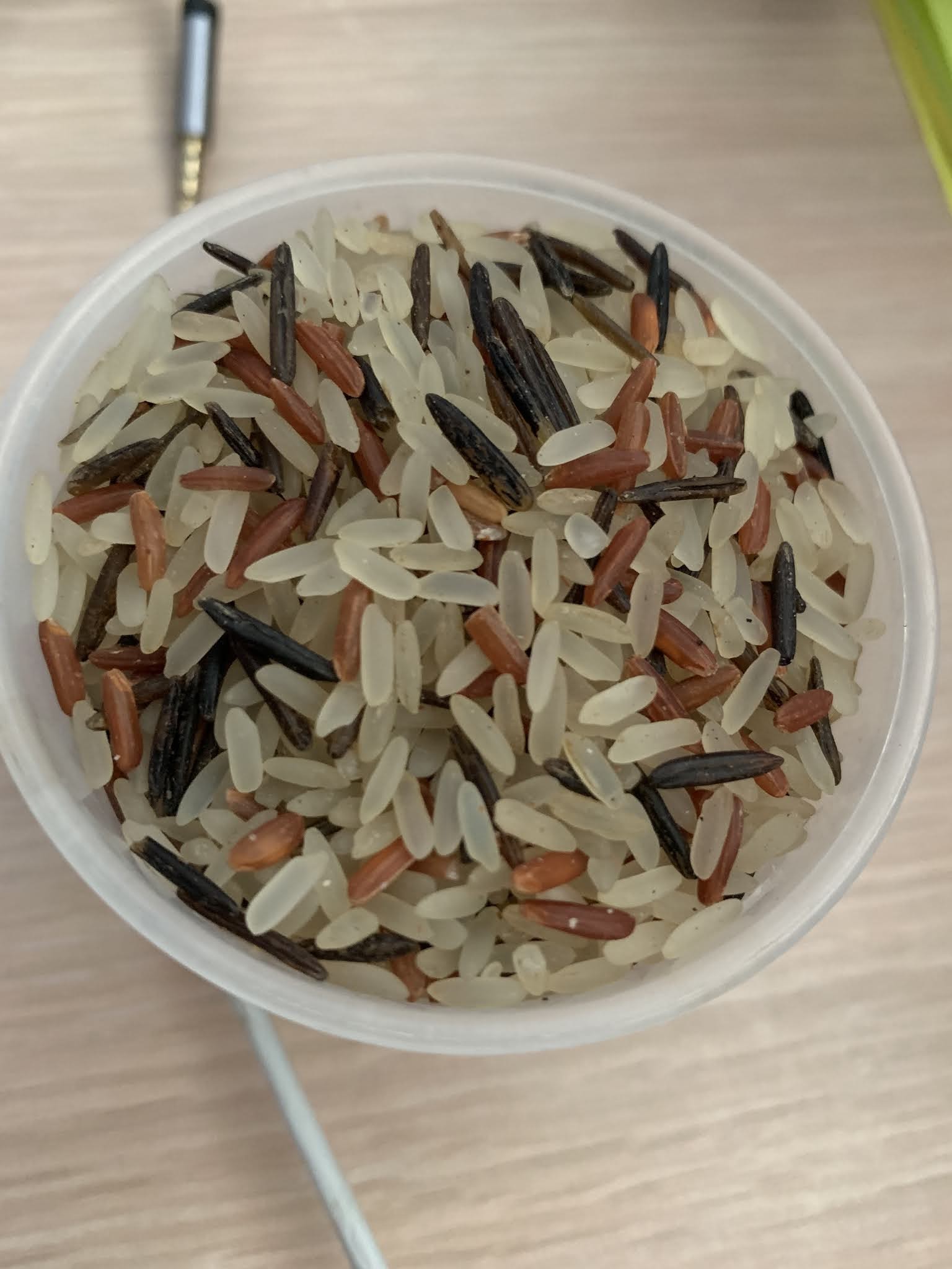 第一次買mélange de 3 riz,內容物為紅米、紫米、與偏黃的長米。