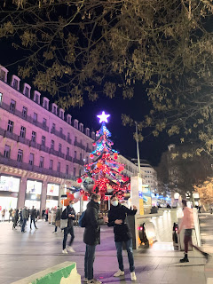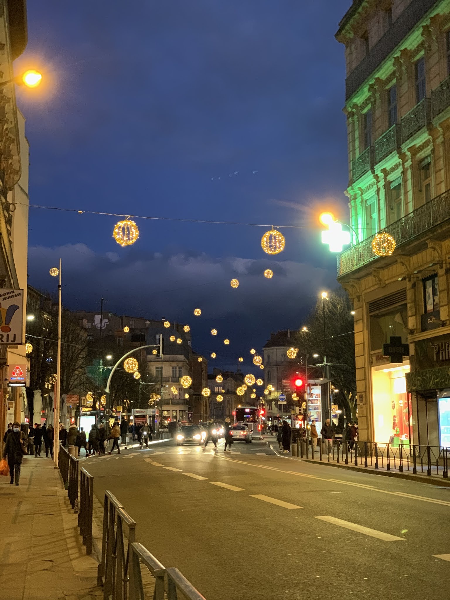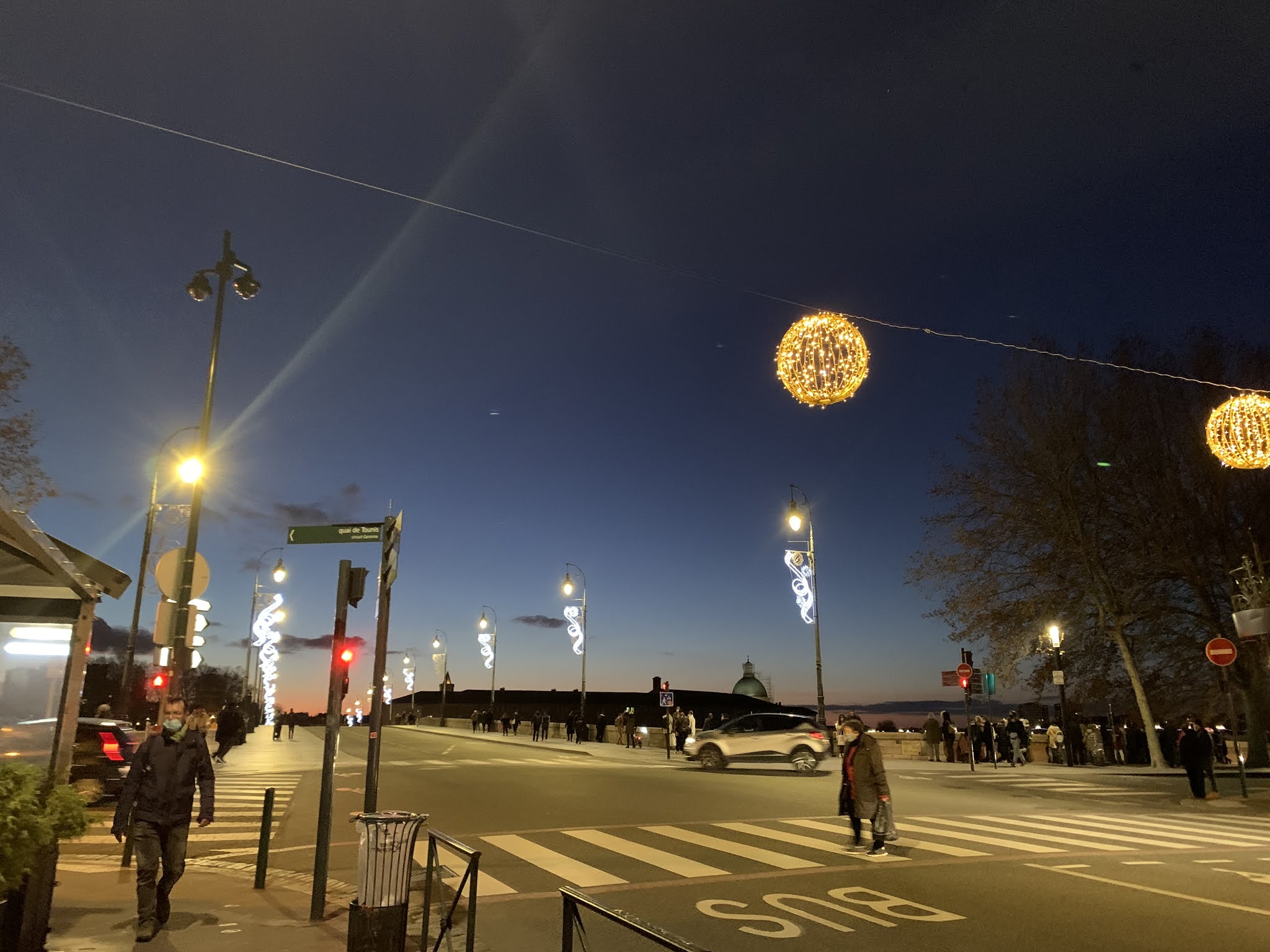 之前從土魯斯市政廳的FB得知,12/18-12/31間,每天的傍晚六點至七點半,加龍河上Pont Neuf旁的Hôtel-Dieu Saint-Jacques牆面上會投影音樂光雕。眼看這天應該是光雕秀結束前天氣最好的一天,躊躇要不要晚上出門看看,很幸運隔壁學校兩個多月沒見的朋友有興趣同行,便毅然出發。